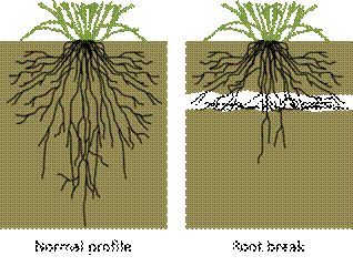 If you have root breaks then look to see whether roots are growing horizontally and whether they grow any deeper than the root break this is important because root breaks commonly cause shallow horizontal rooting (Figure 2).