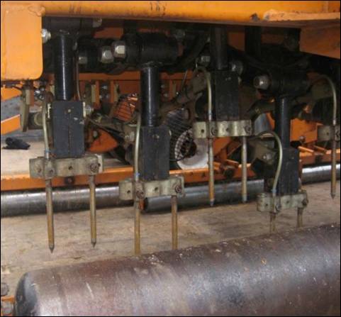 Figure 1 Solid tines mounted on a cam in a tractor mounted solid tine aerator.